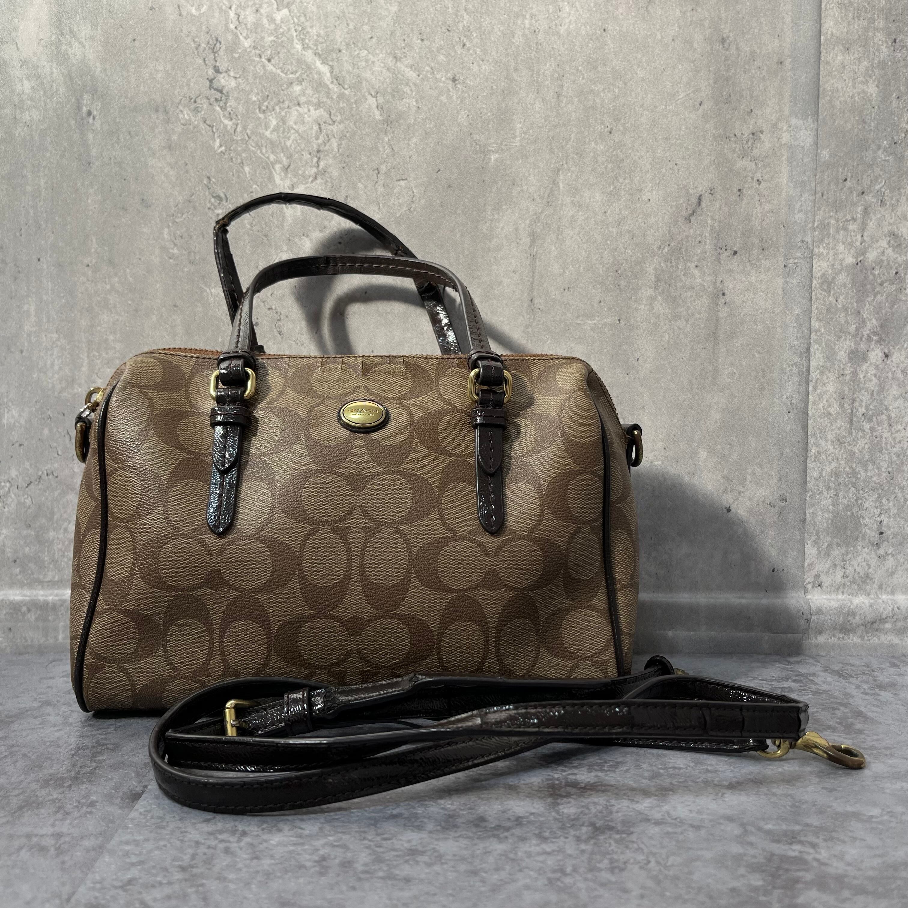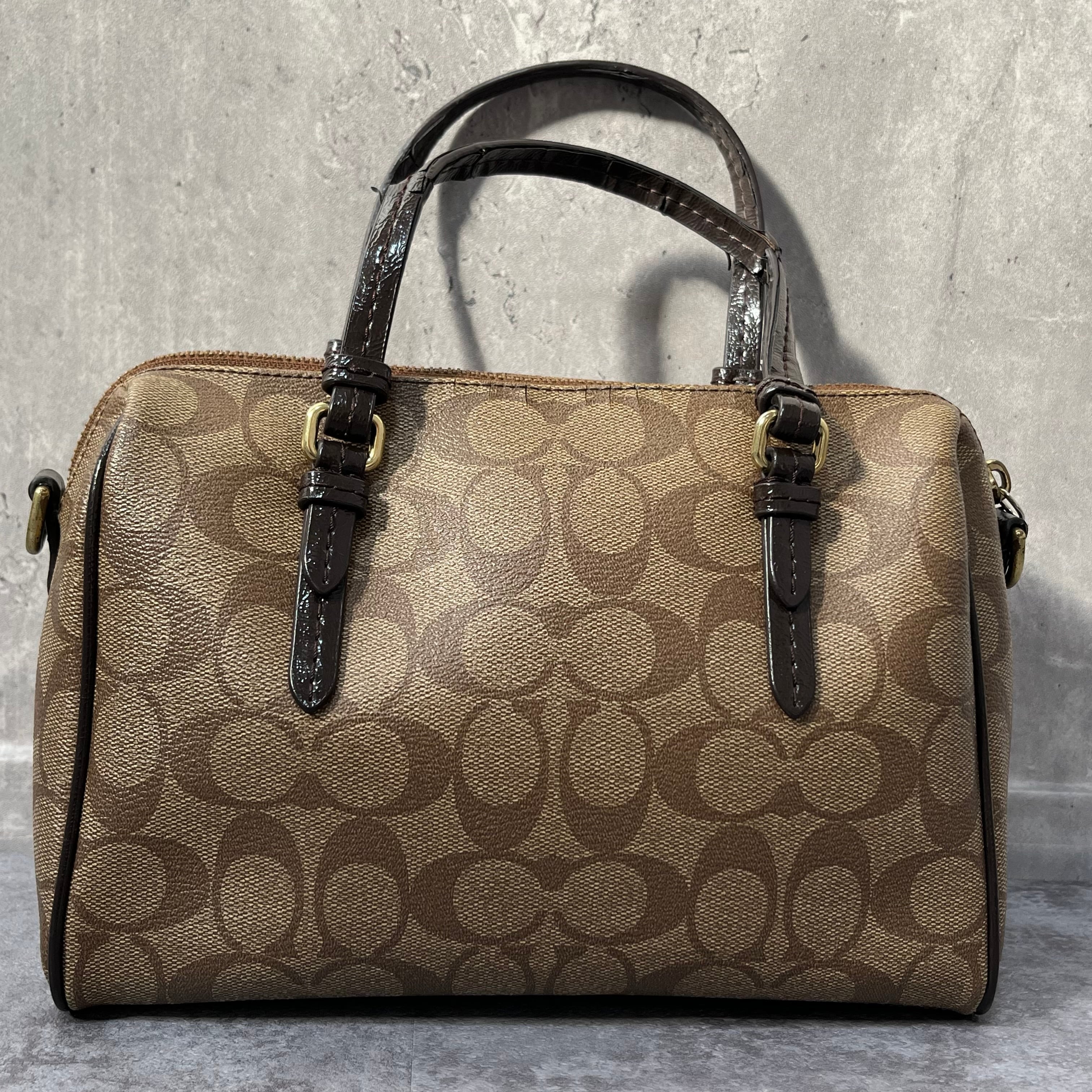 【coach】コーチ 2WAY ショルダーバッグ ハンドバッグ シグネチャー ミニボストン ブラウン
