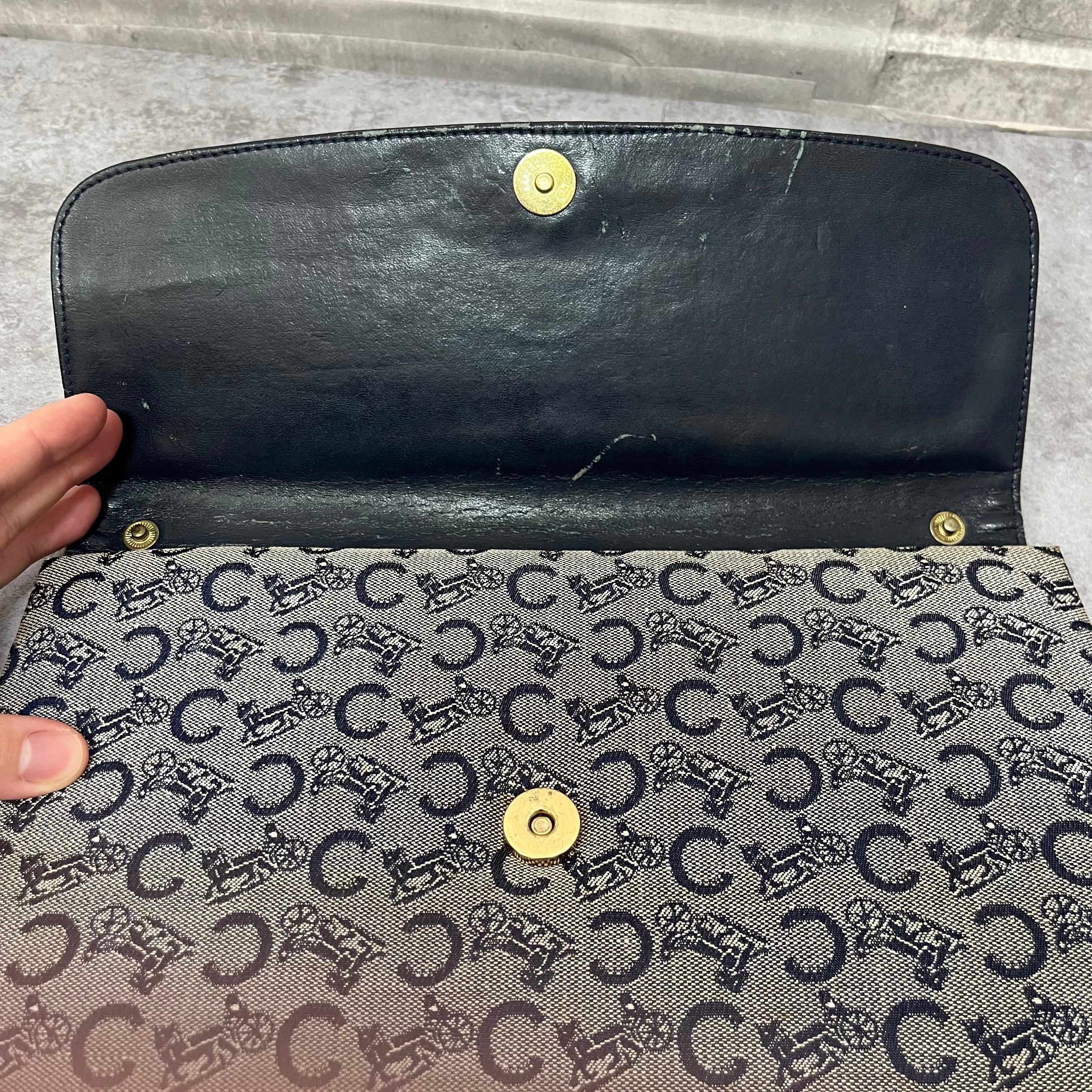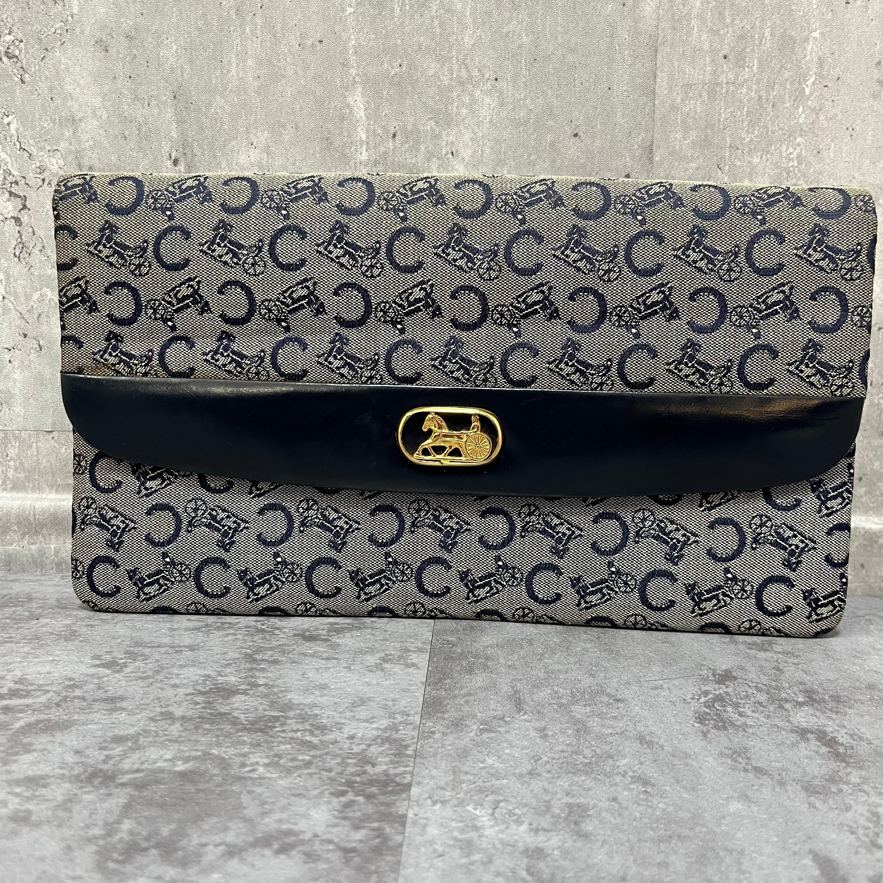 【CELINE】セカンドバッグ マカダム Cロゴ 馬車 金具 スナップボタン グレー ブラック バイカラー セリーヌ