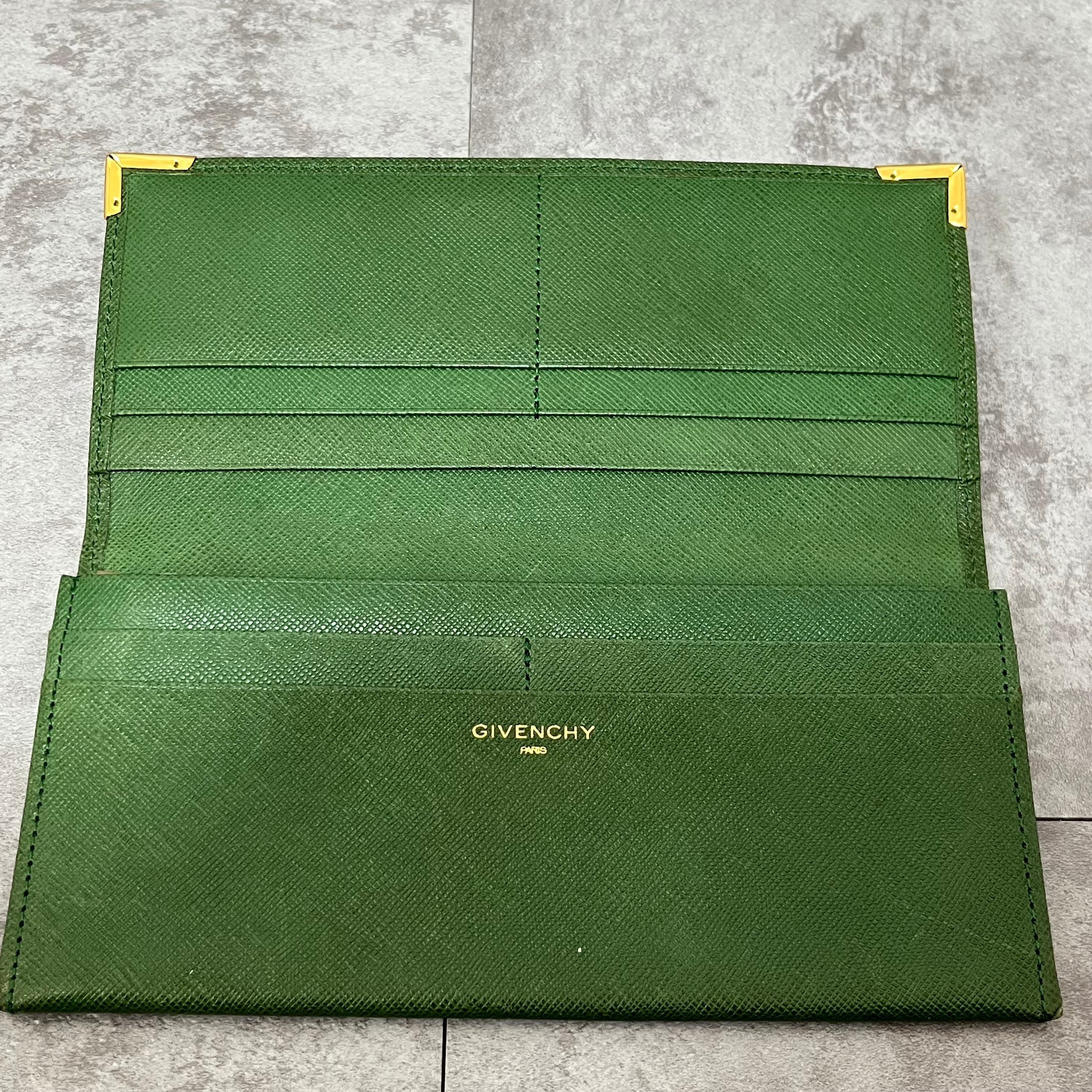 【GIVENCHY】2つ折り長財布 グリーン 緑 金縁 ゴールド 金具 ジバンシイ ジバンシー