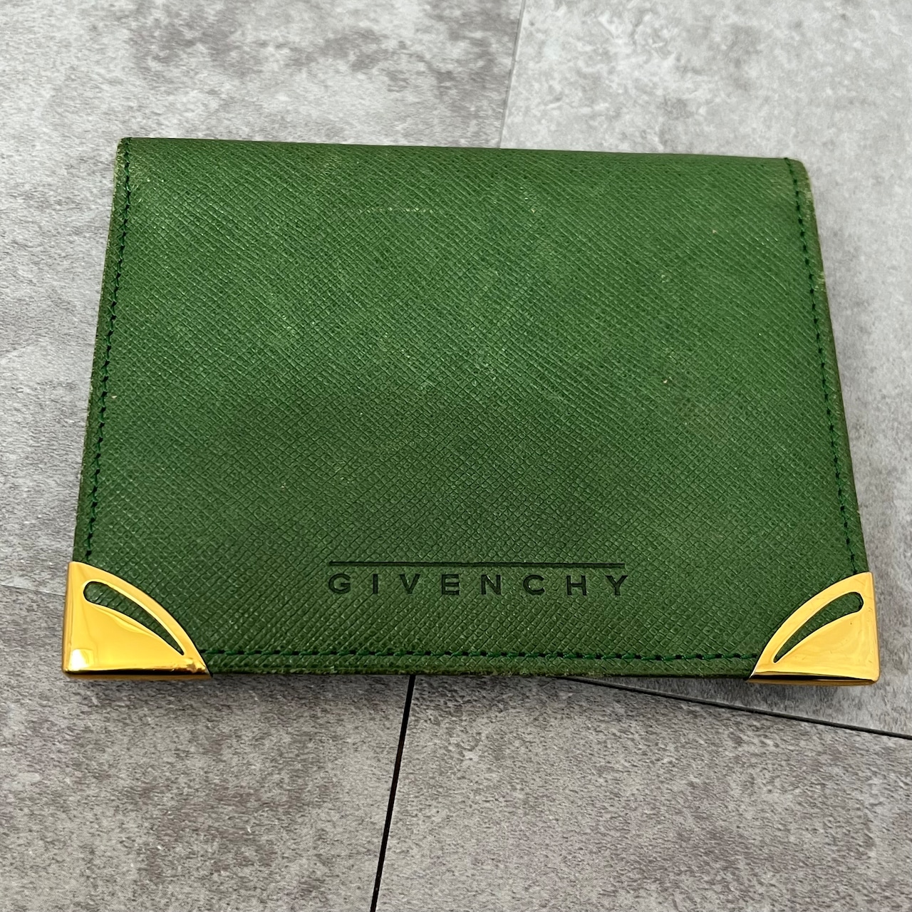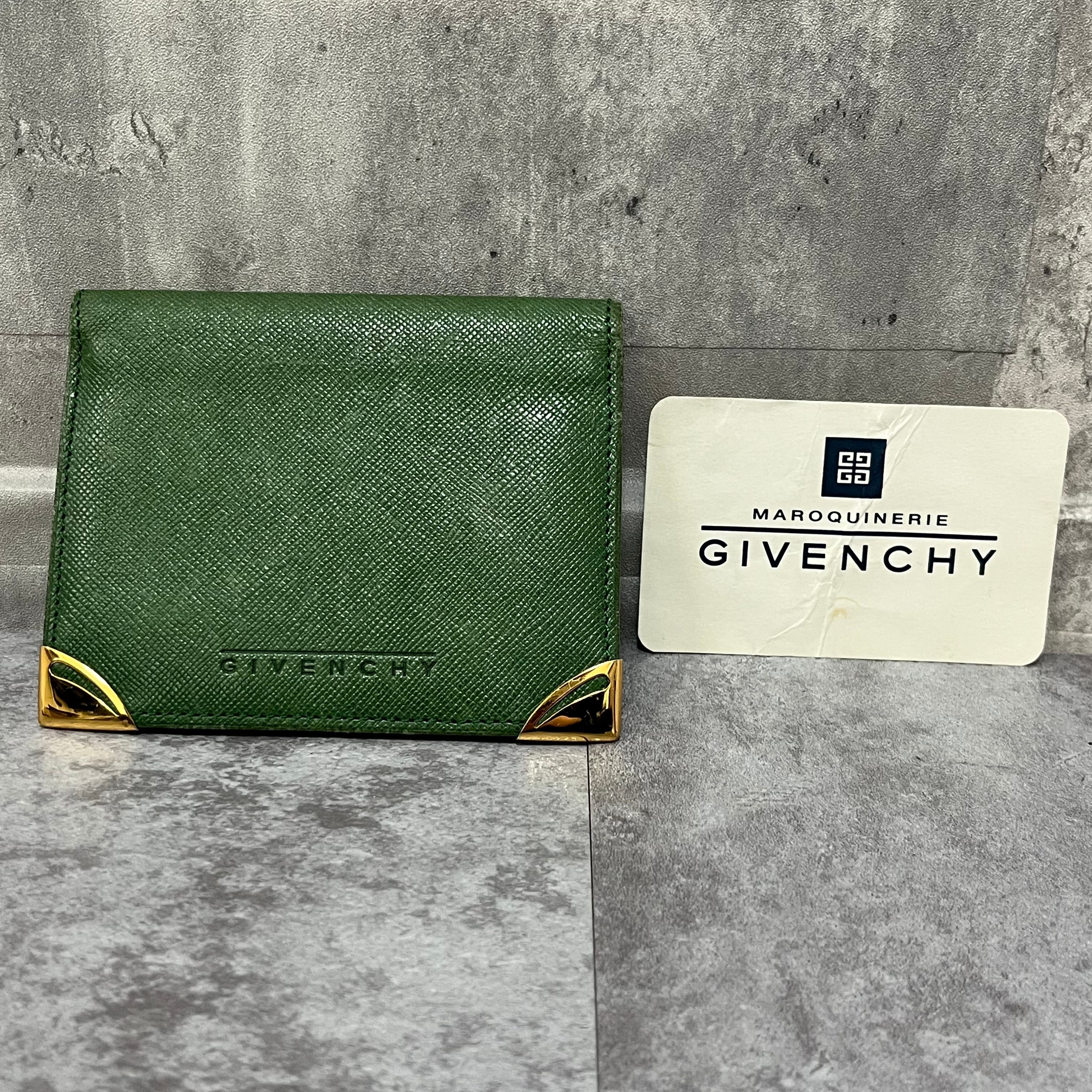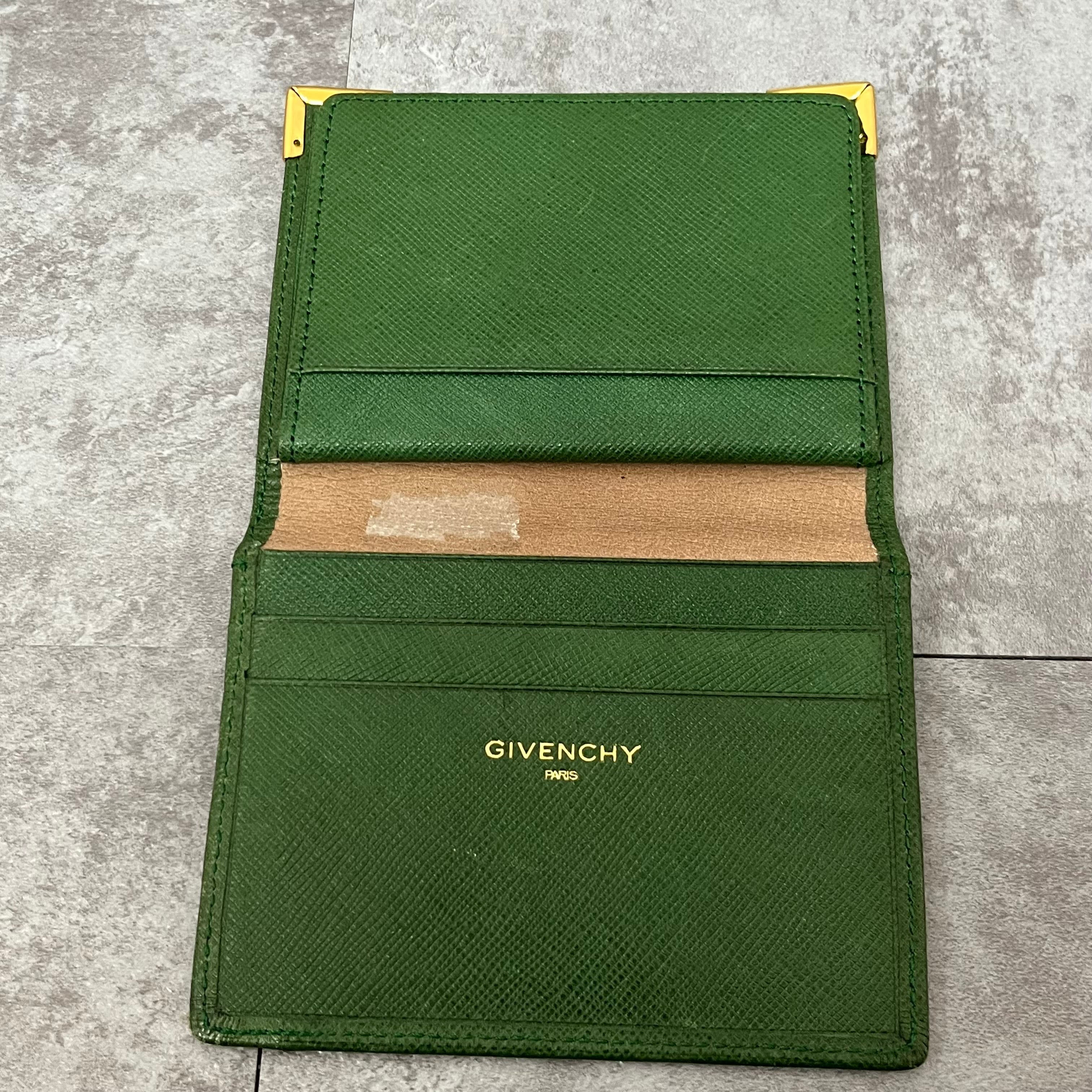 【GIVENCHY】パスケース カードケース グリーン 緑 カード付 金具 ゴールド 金縁 ロゴ入り ジバンシー ジバンシイ