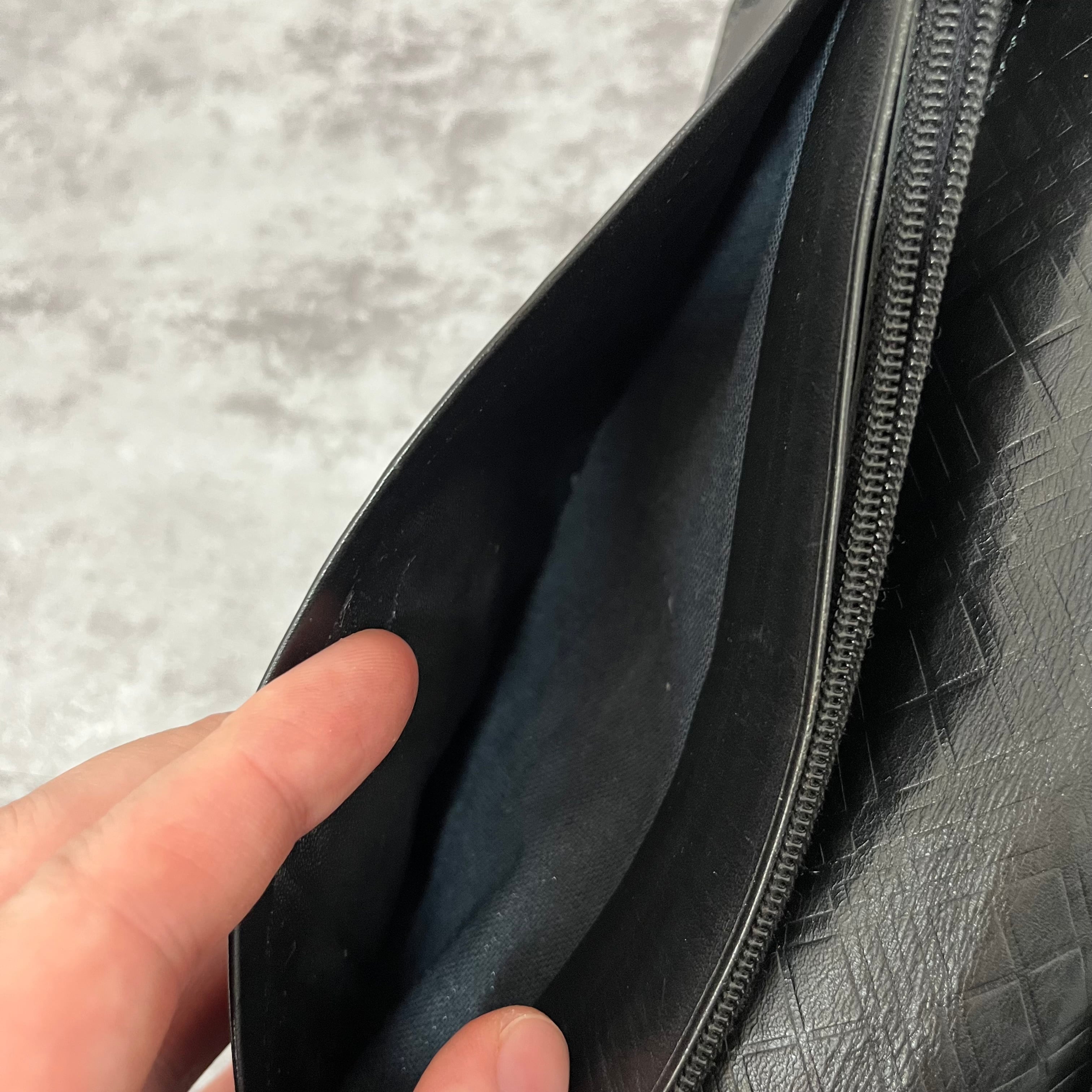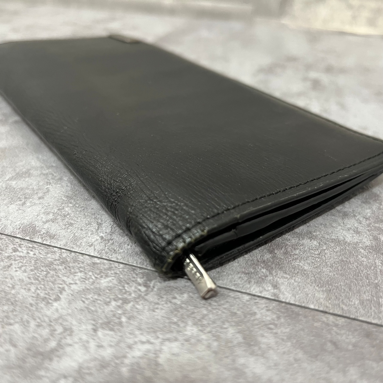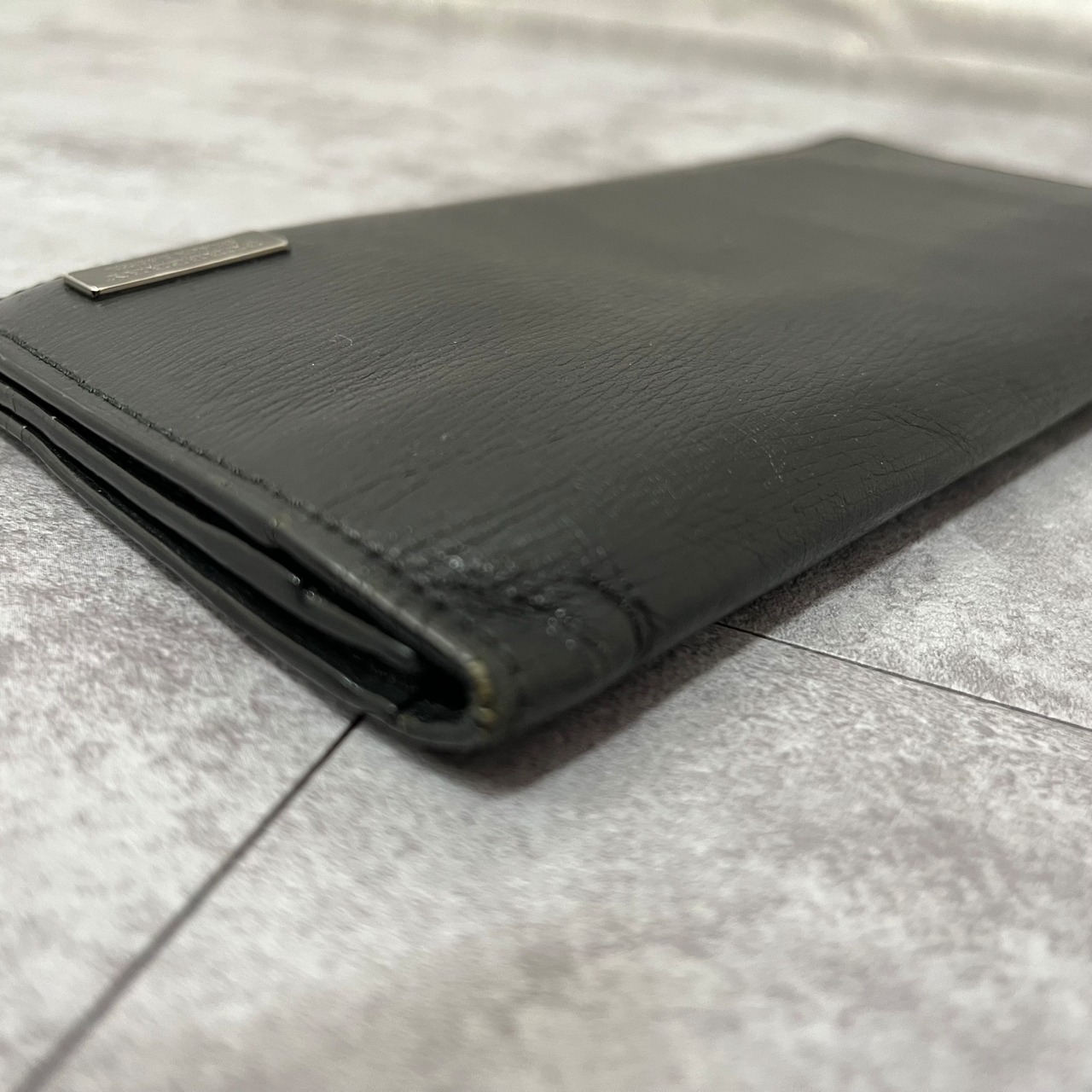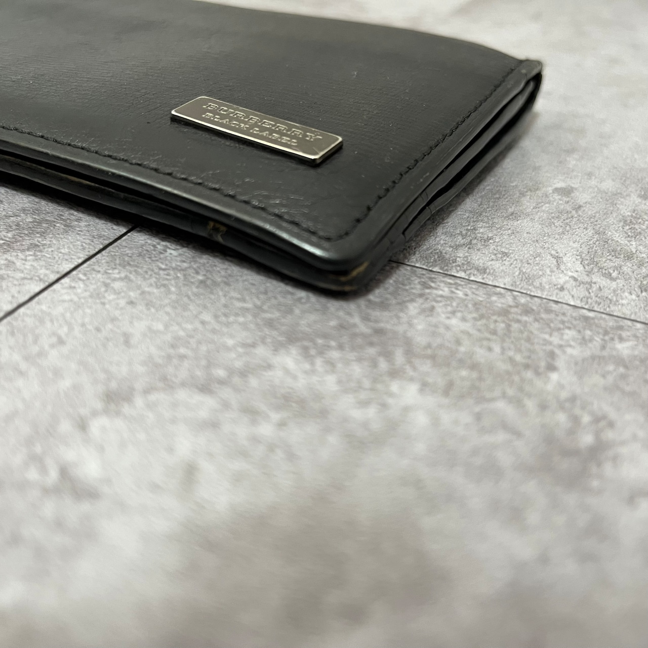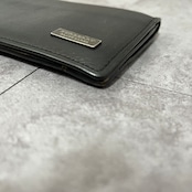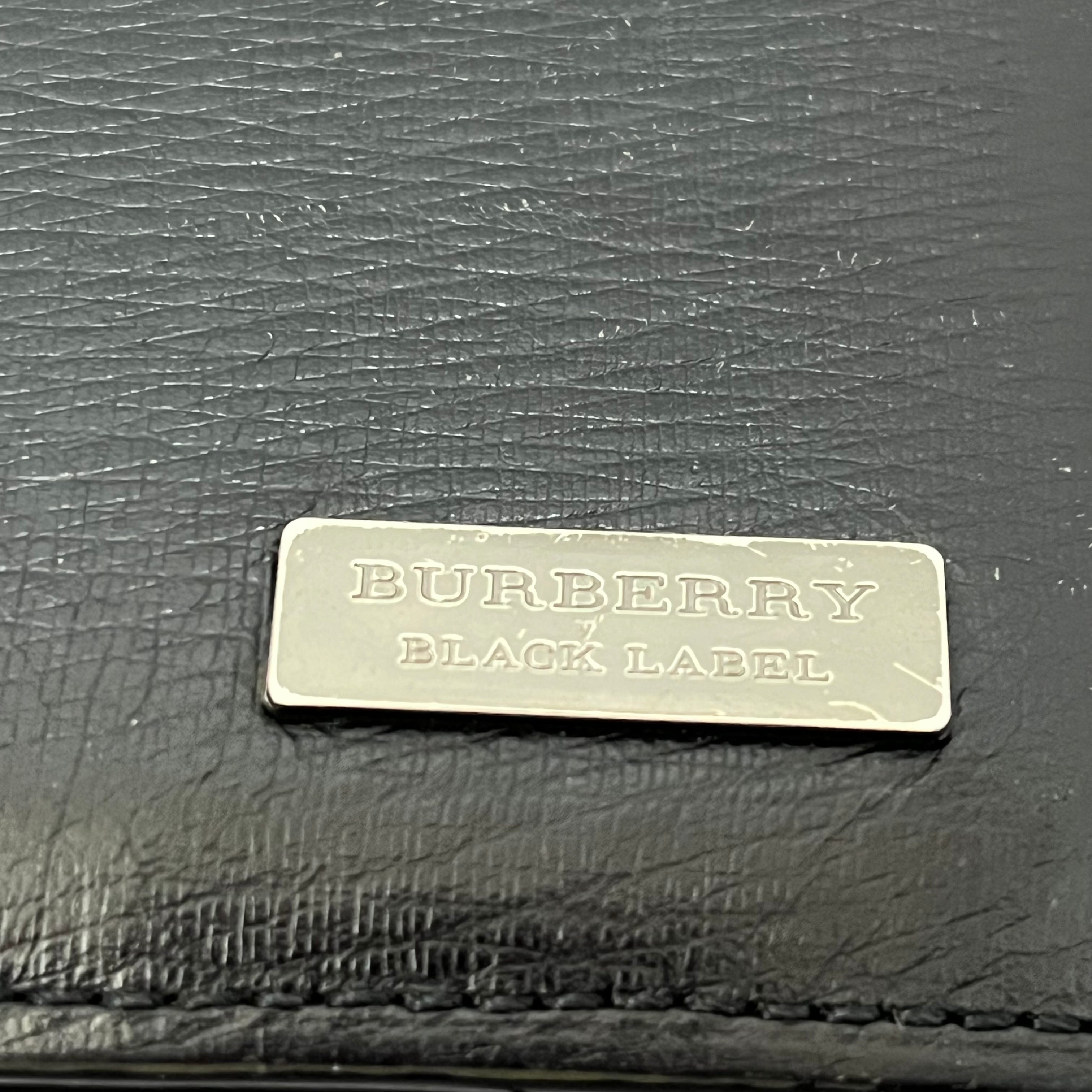 【BURBERRY BLACK LABEL】レザー2つ折り長財布 ブラック ロゴ入り 銀金具 黒 バーバリーブラックレーベル シンプル