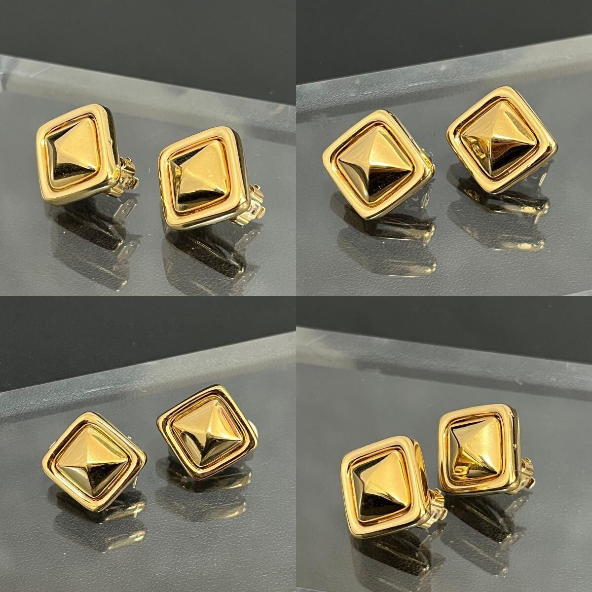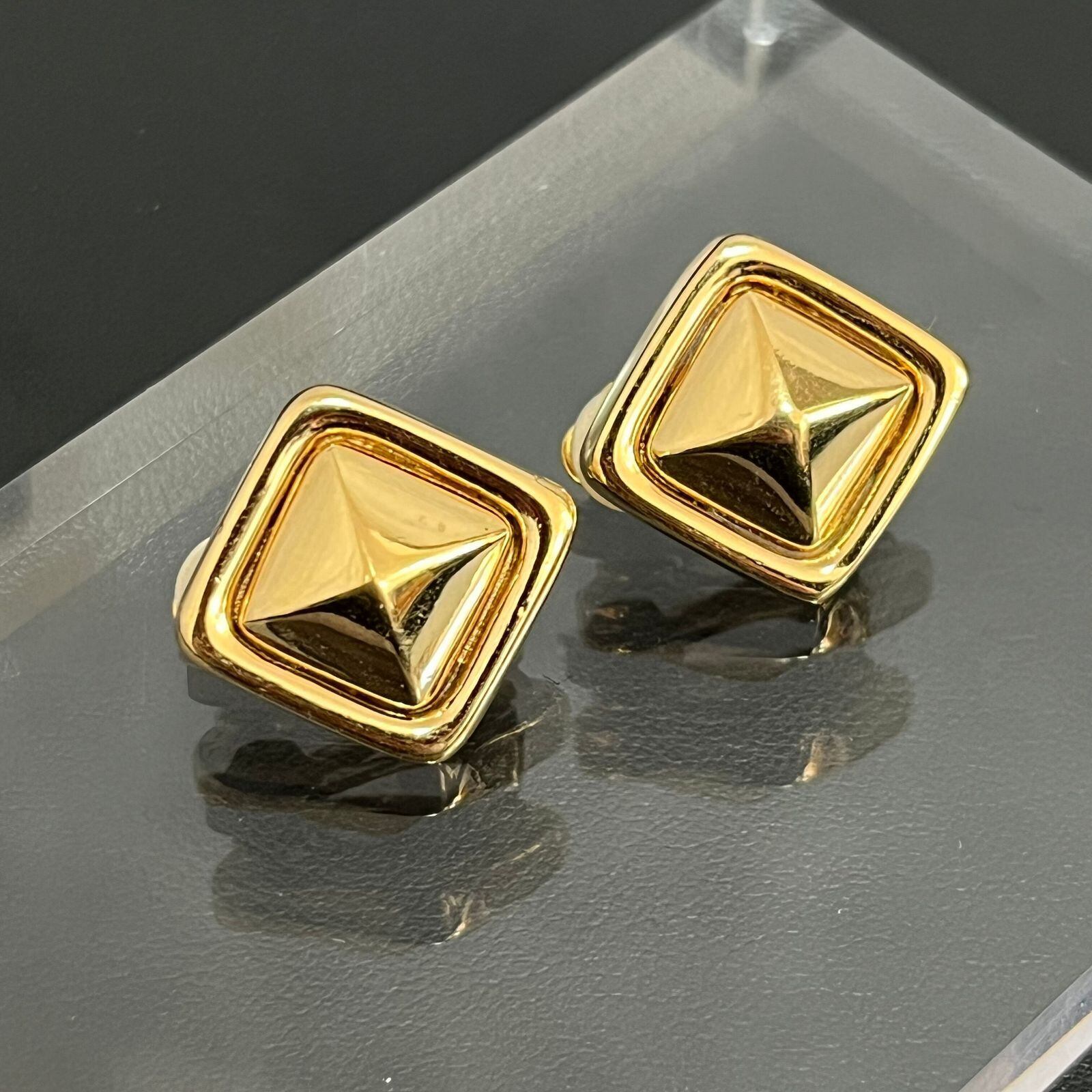 【GIVENCHY】ジバンシー イヤリング スクエアイヤリング メタルイヤリング レディース アメリカ製 ニューヨーク ゴールド 金色 ピラミッドデザイン スタッズ風 ヴィンテージアクセサリー エレガント
