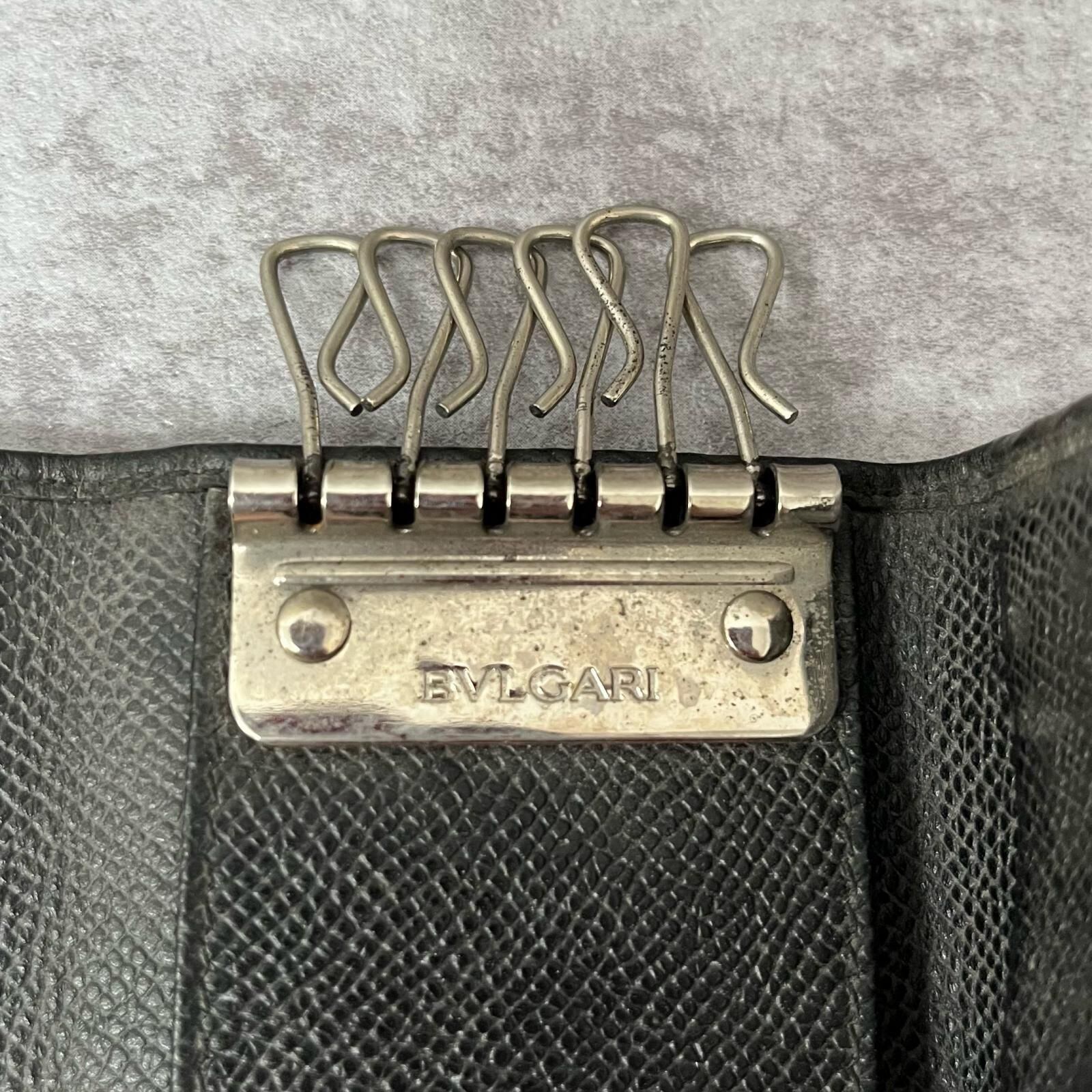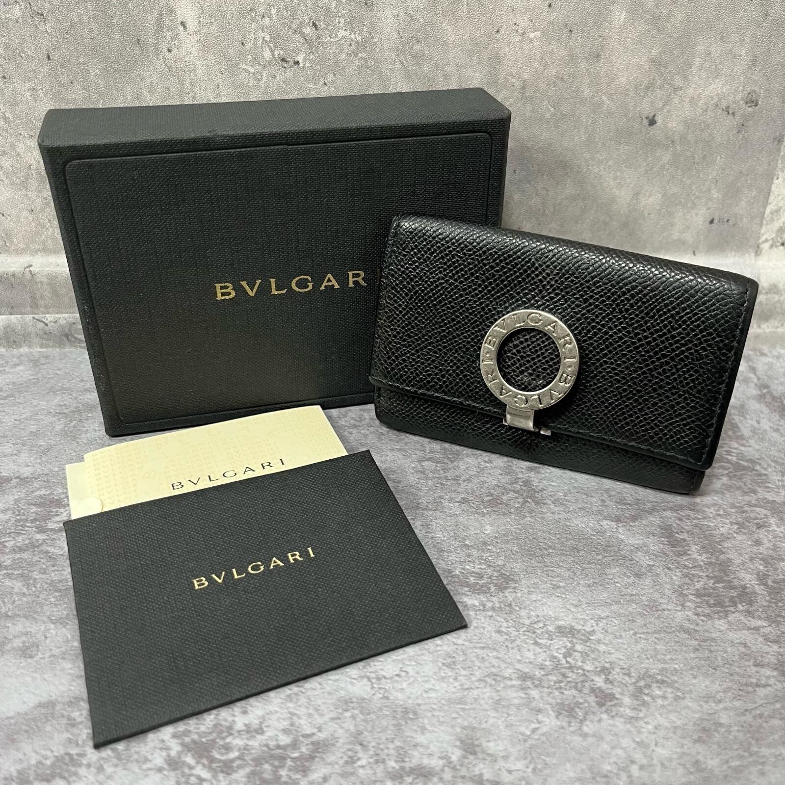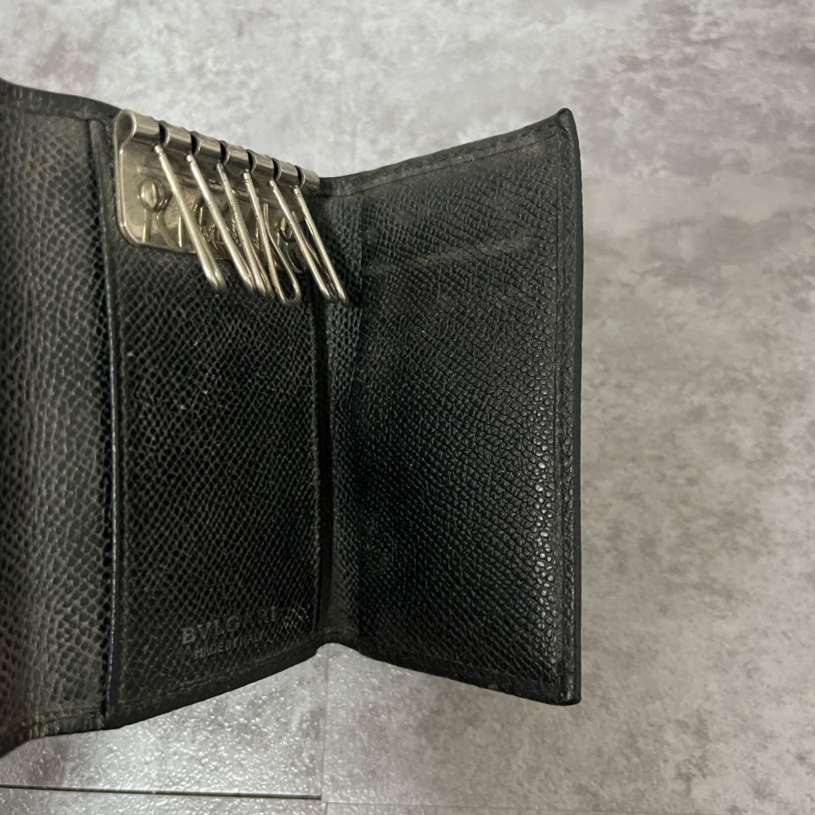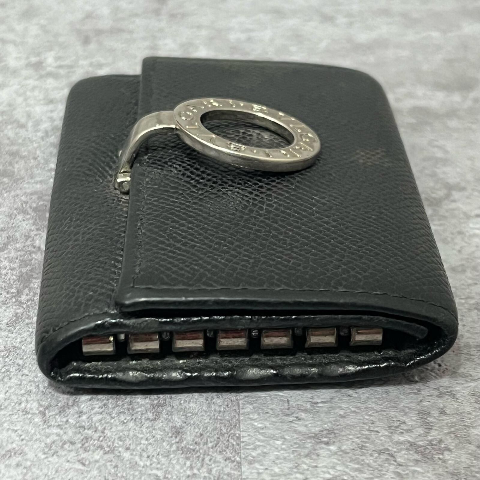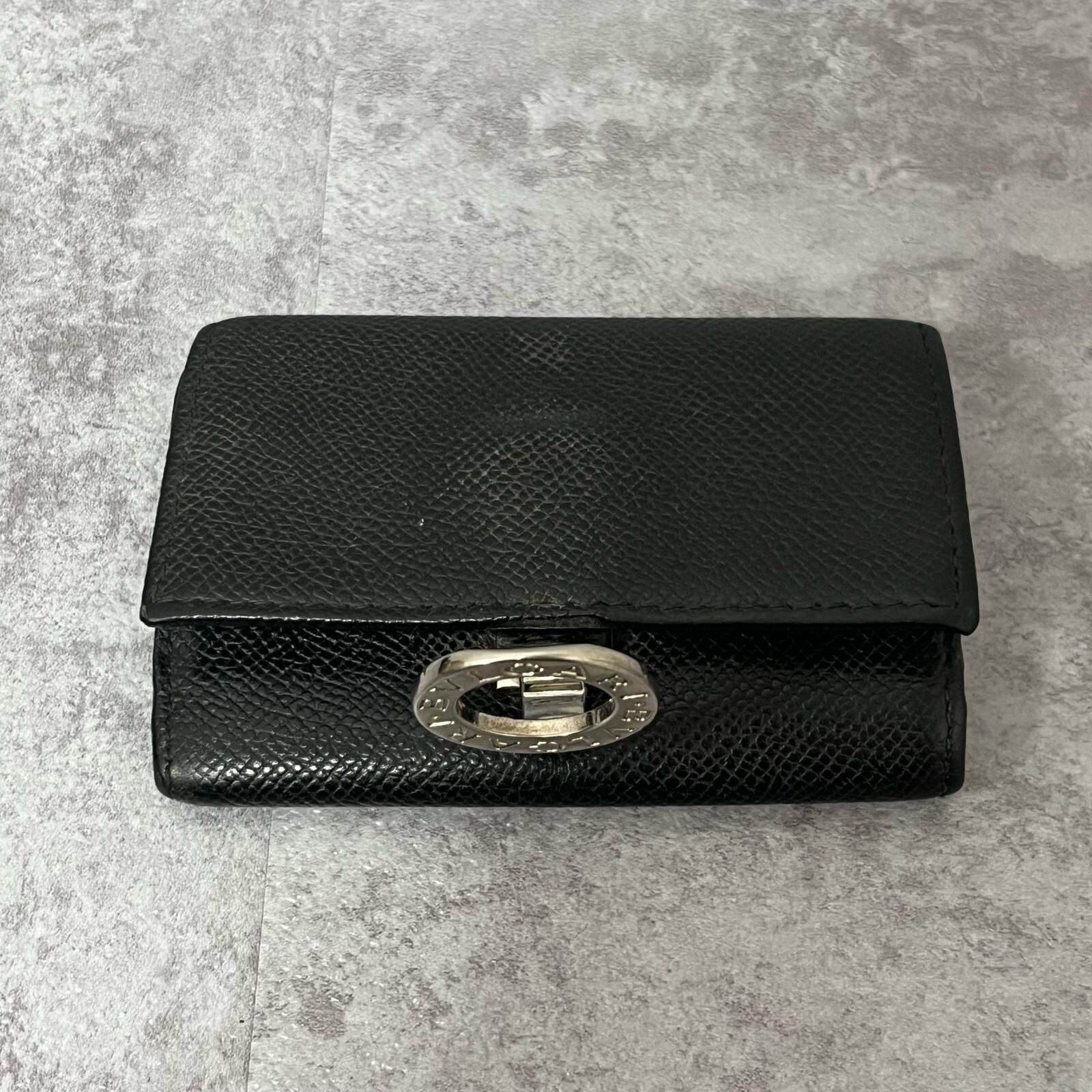 【BVLGARI】ブルガリ キーケース BVLGARIロゴリングモチーフ グレインレザー メンズ ユニセックス イタリア製 ブラック 黒色 キーケース 箱付き ギャランティ付き 型番30422