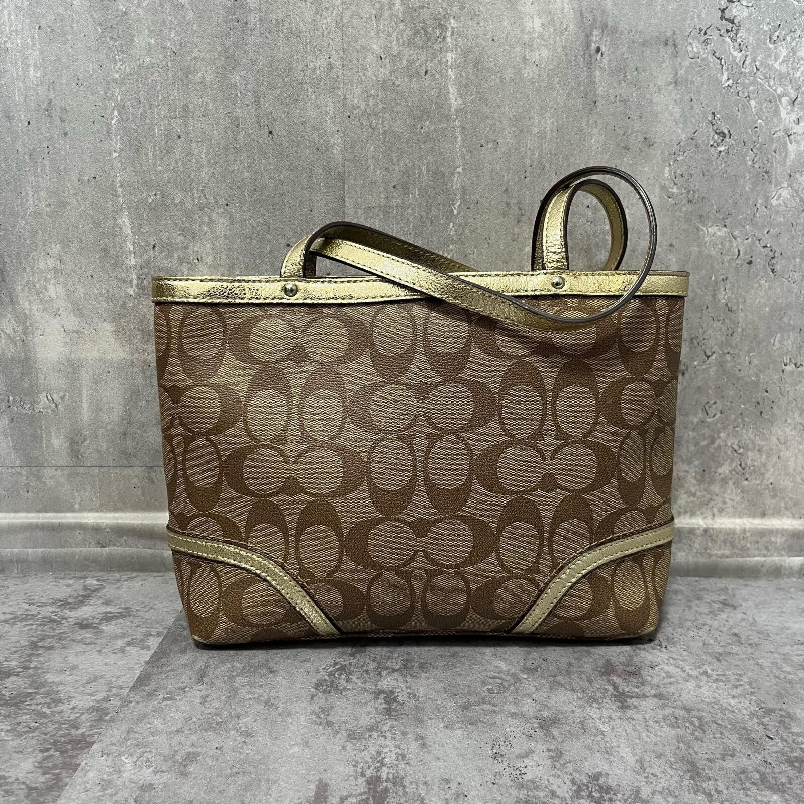 【COACH】コーチ ハンドバッグ チェルシーシグネチャーミニトート シグネチャー柄トートバッグ レディース ベージュ ブラウン 茶色 ゴールド 金色 スタープリント 星柄 ミニトートバッグ カジュアルバッグ F47200