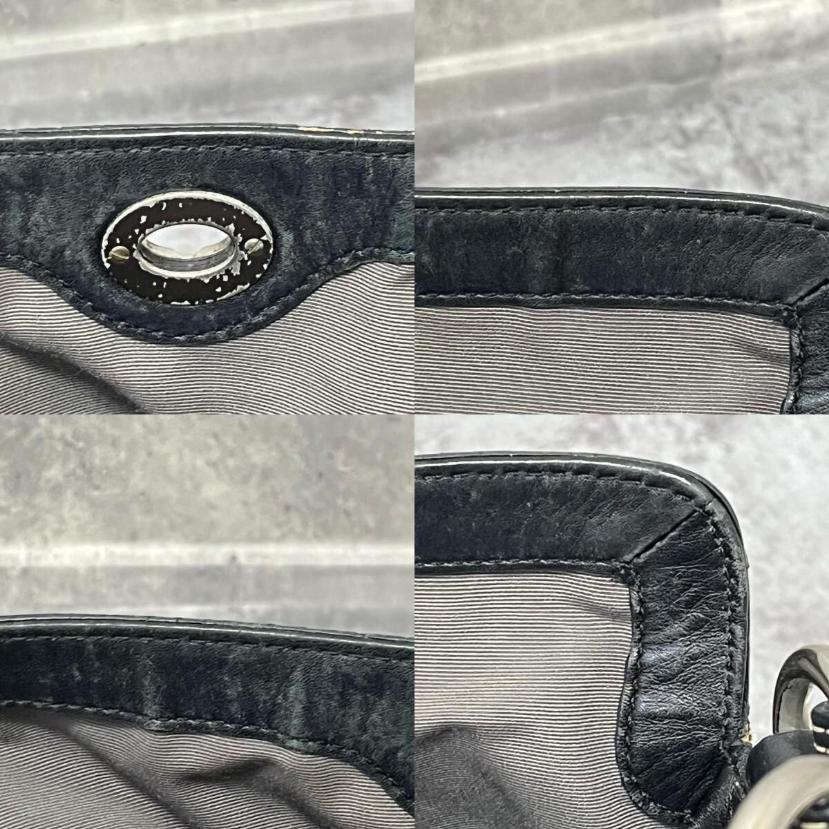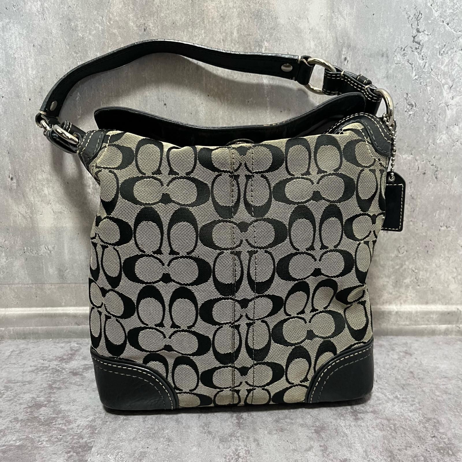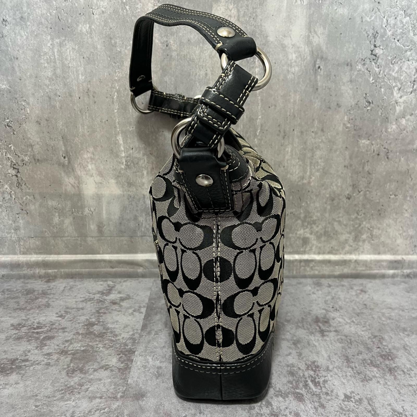 【COACH】コーチ ショルダーバッグ シグネチャーショルダーバッグ レディース ブラック 黒色 グレー シグネチャー柄 キャンバス レザー フロントポケット付き カジュアルバッグ F10981