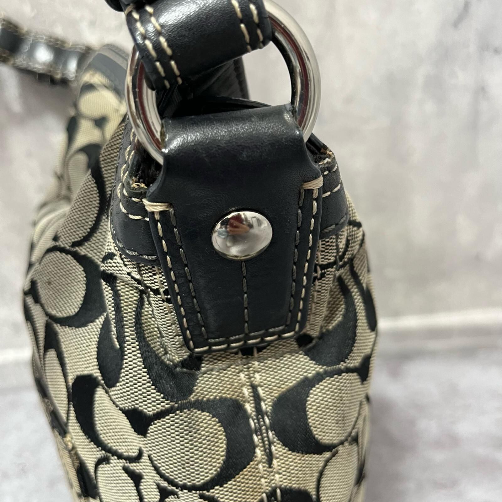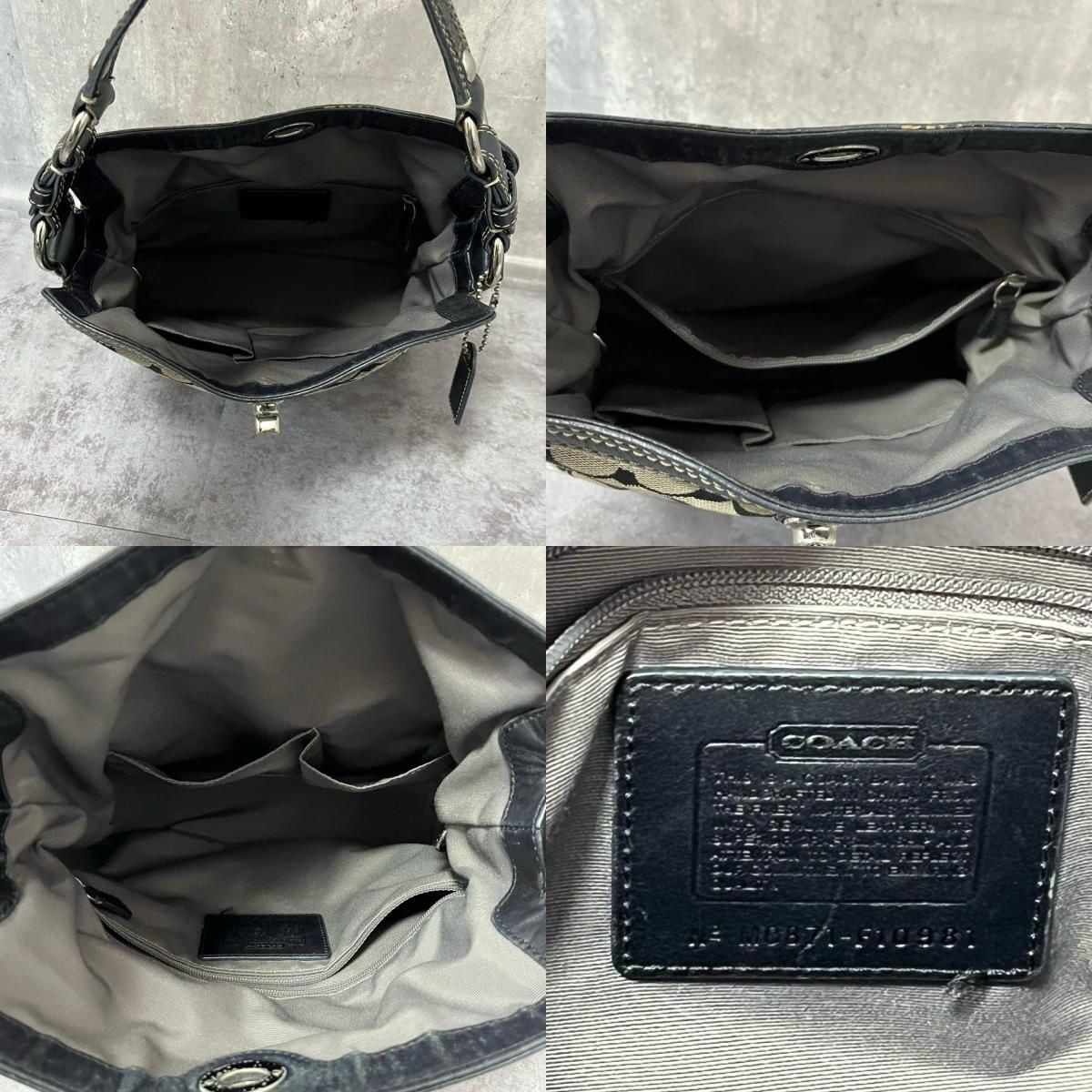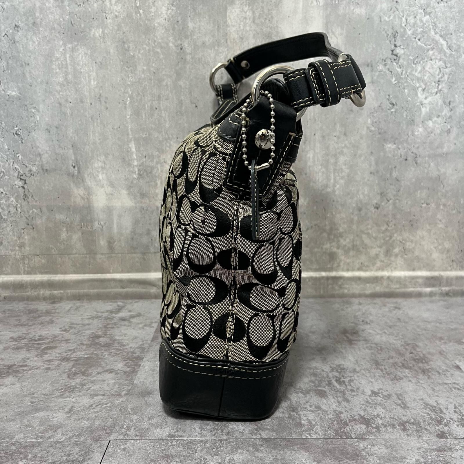 【COACH】コーチ ショルダーバッグ シグネチャーショルダーバッグ レディース ブラック 黒色 グレー シグネチャー柄 キャンバス レザー フロントポケット付き カジュアルバッグ F10981
