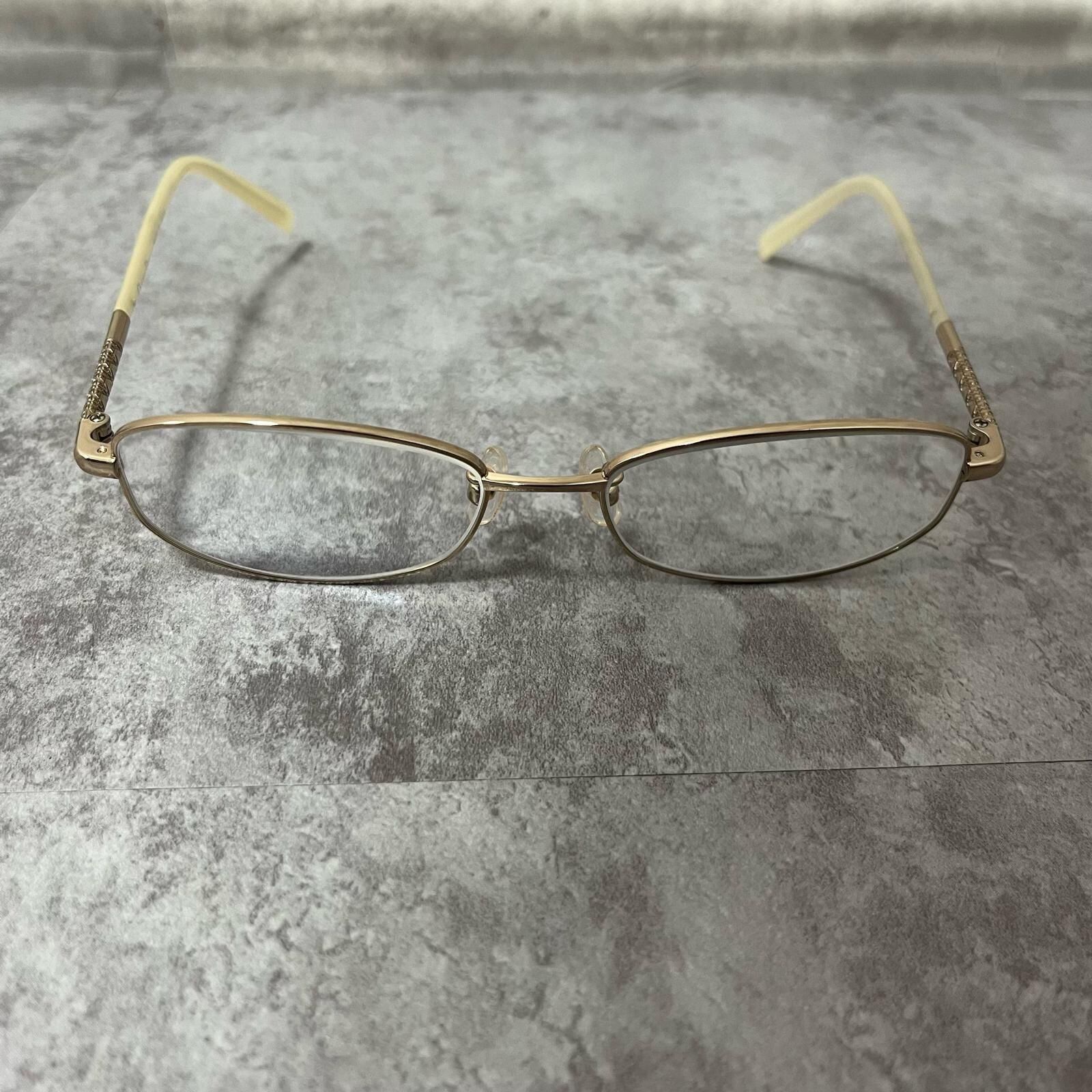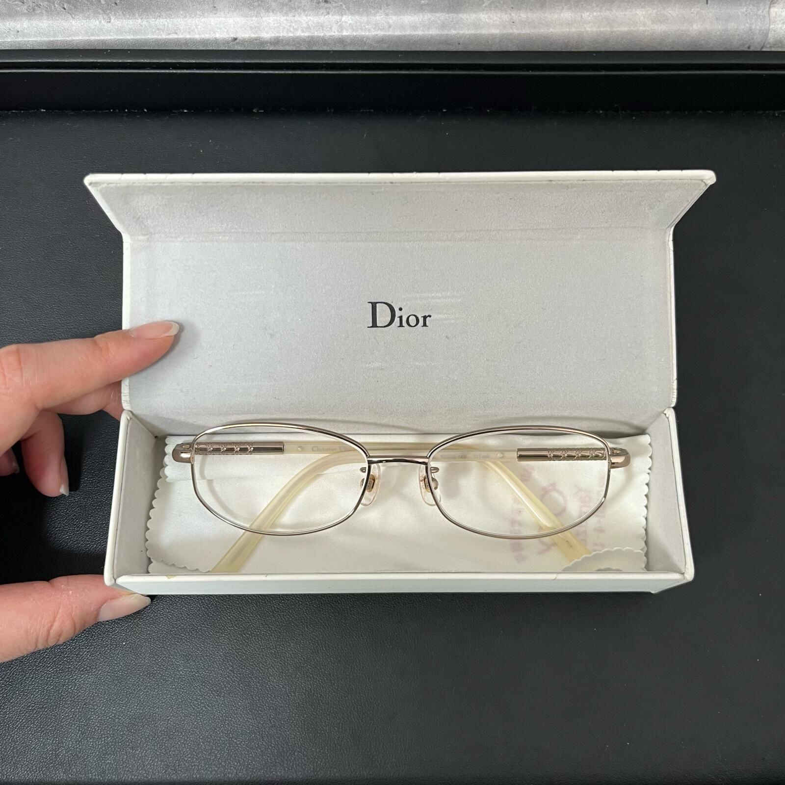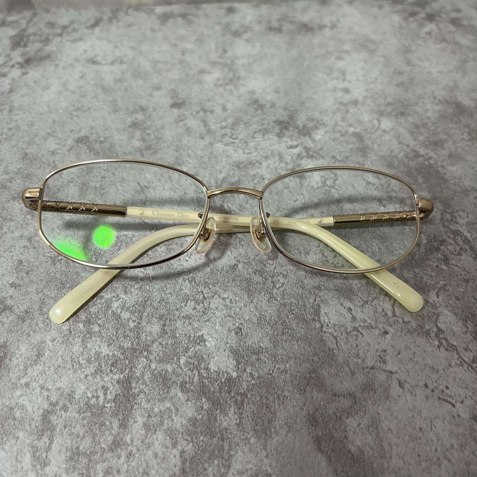 【Christian Dior】クリスチャンディオール オーバル型メガネ CDロゴモチーフ チタン×プラスチック レディース 日本製 ゴールド 金色 クリア 透明 軽量フレーム メガネケース付き クリーニングクロス付き 型番CD7742J