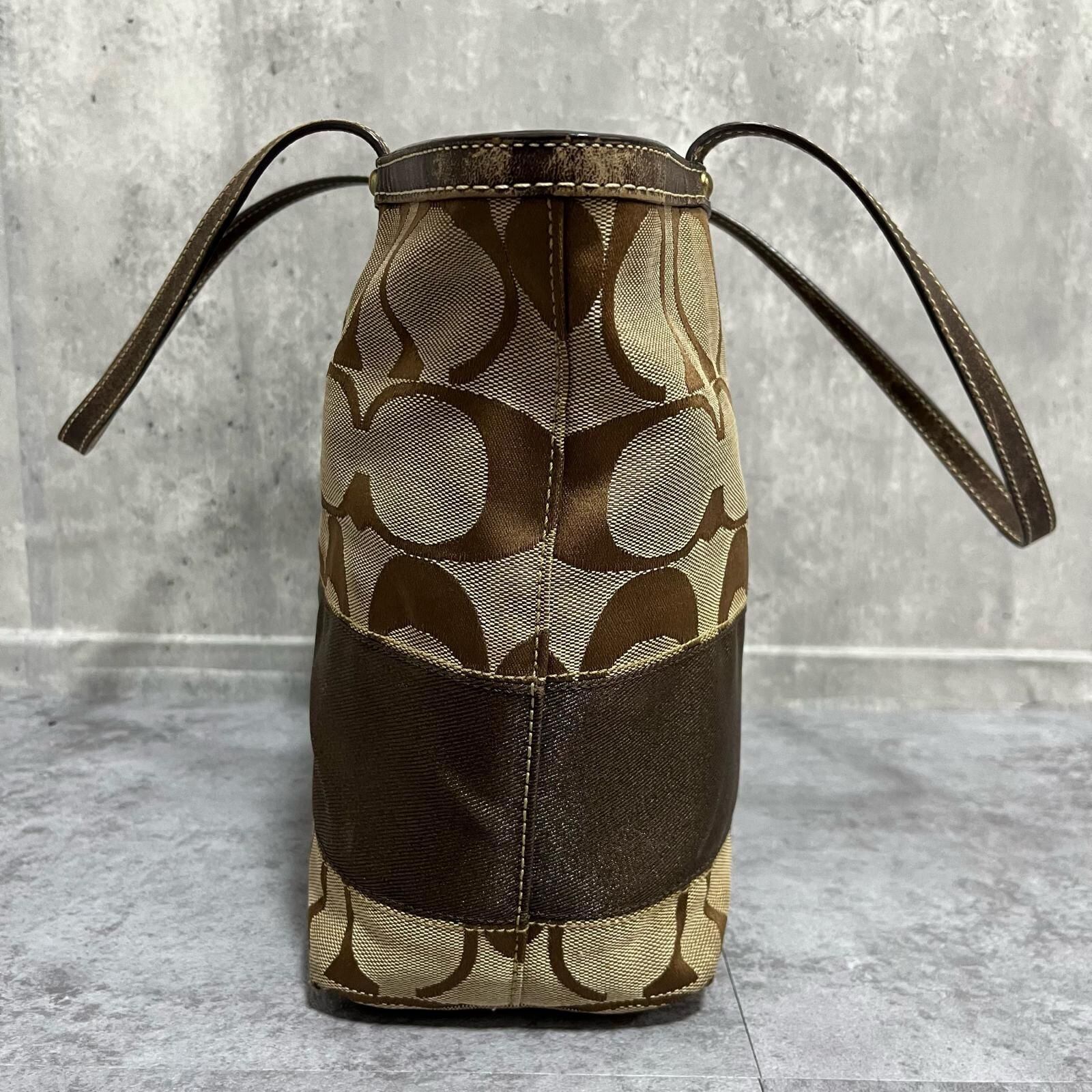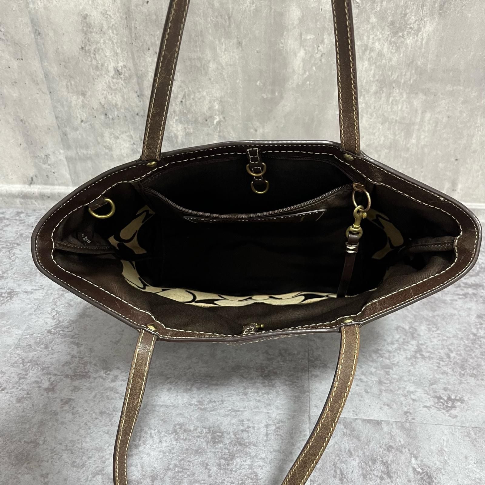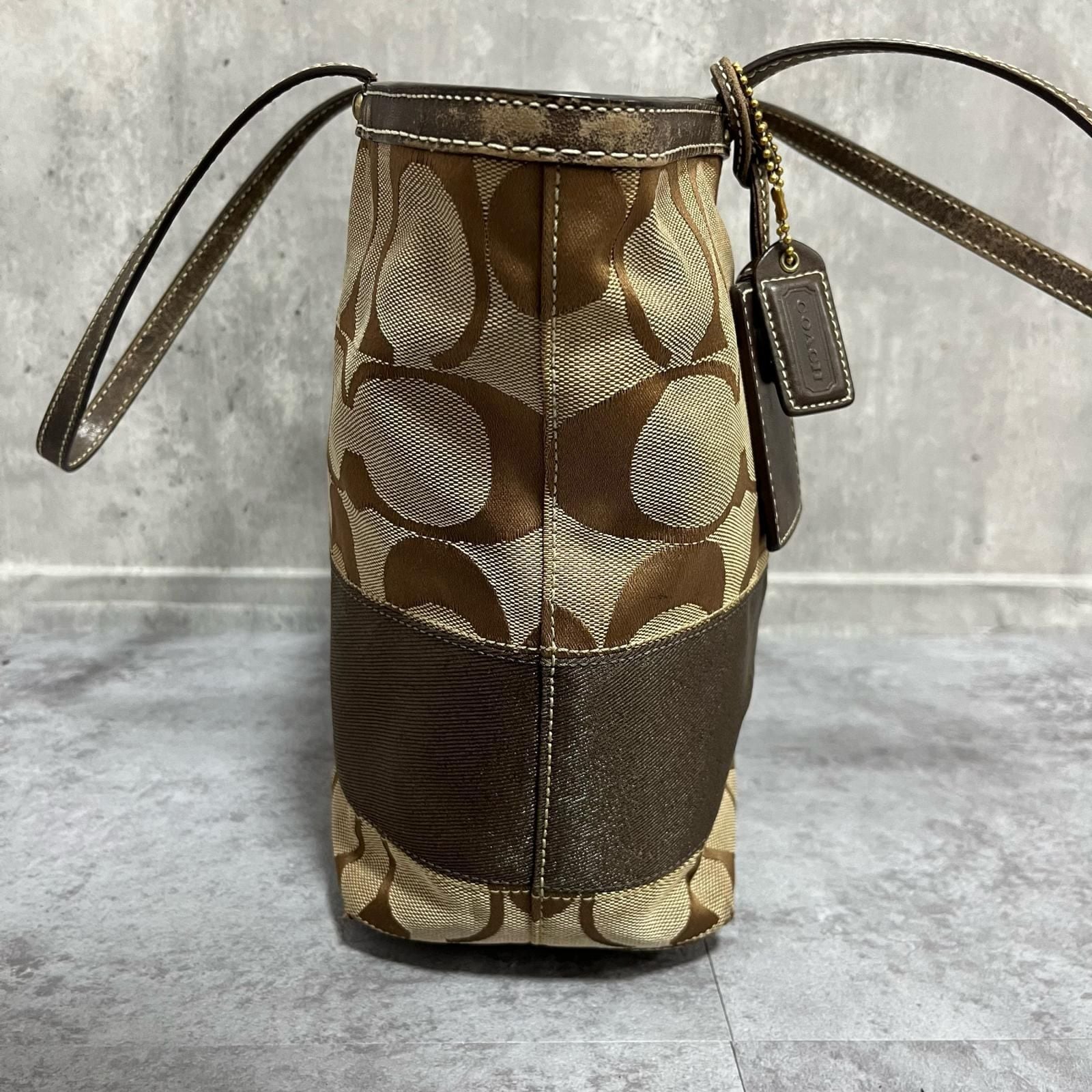 【COACH】コーチ シグネチャー柄トートバッグ シグネチャーモチーフ キャンバス レザー レディース ベージュ ブラウン 茶色 トートバッグ ロゴチャーム付き 型番C06K10124