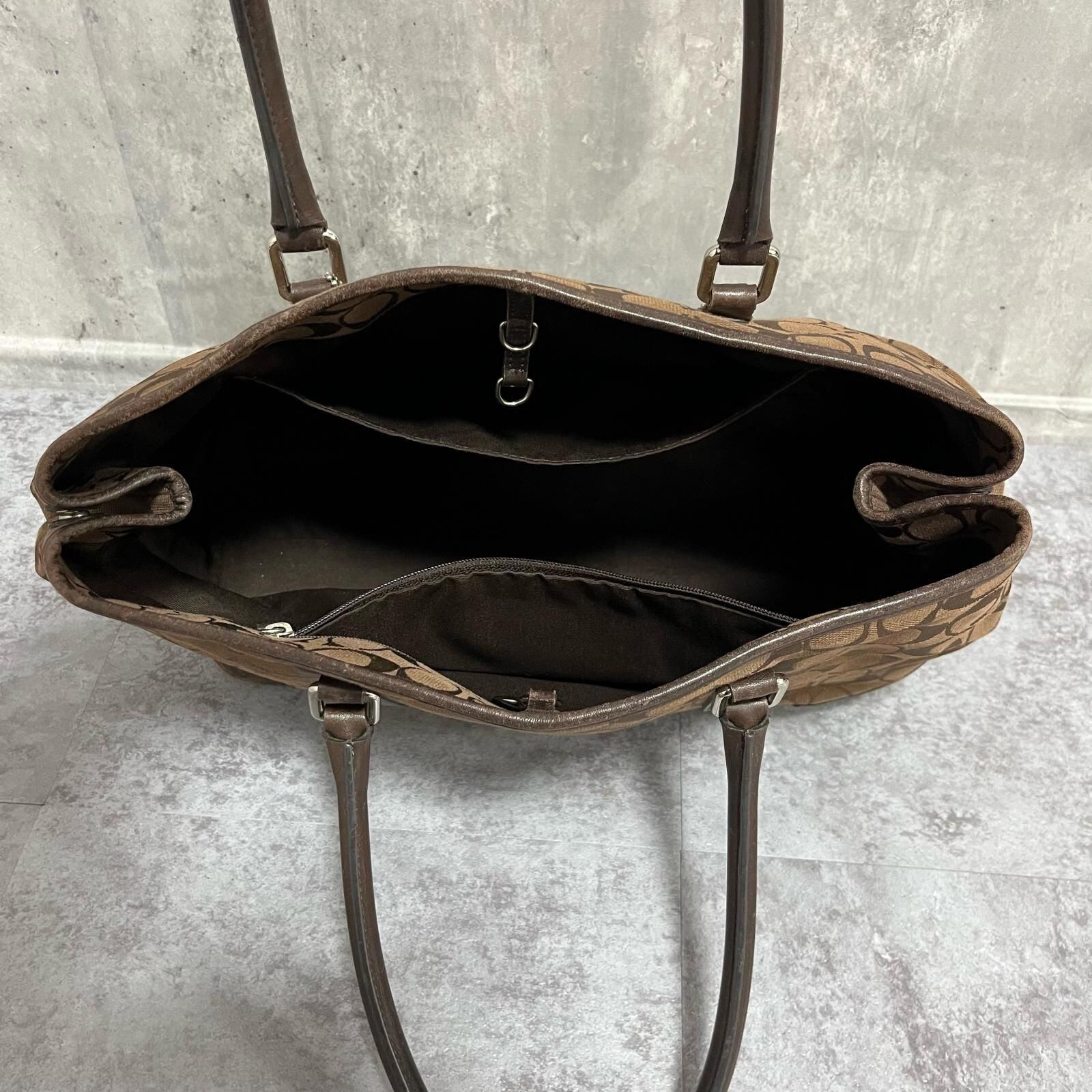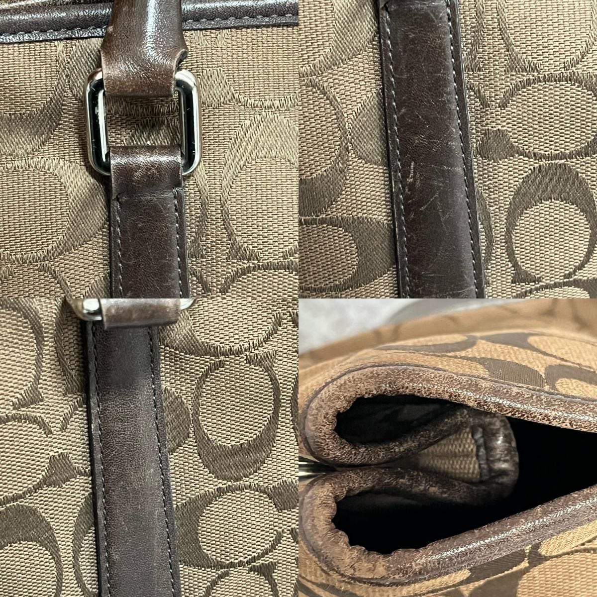 【COACH】コーチ シグネチャー柄ハンドバッグ シグネチャーモチーフ キャンバス レザー レディース ブラウン 茶色 ハンドバッグ ロゴチャーム付き 型番E1J6086